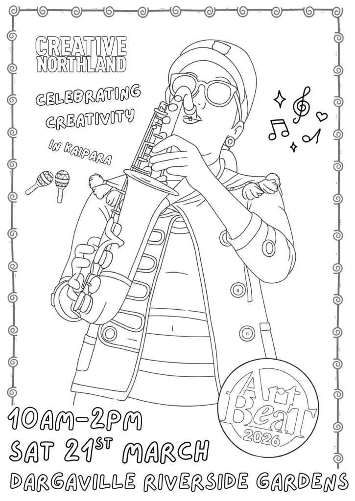 Bring your finished colouring-in page with you to the ArtBeat 2026 event.