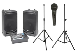 1 x Mixing Desk and Case, 4 x Speakers and 2x Stand,